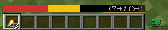 Мод на единый ходбар OneBar переработает процесс вывода информации о вашем здоровье, кислороде и голоде, объединив их в одной полосе. Так же данный мод будет выводить эту информацию только тогда, когда она вам нужна. Положительные эффекты и здоровье отображаются слева направо, а отрицательные справа налево. Так же первой выводится более важная информация, например если вы голодны, но при этом тоните, то в строке будет видна информация о кислороде.